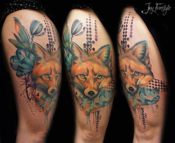 腿部PS图象处理软件风格的彩色狐狸纹身