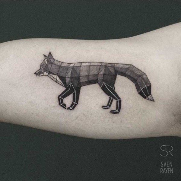 手臂马赛克风格有趣的狐狸纹身图案