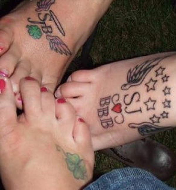 女性象征友谊的脚部彩色纹身图案
