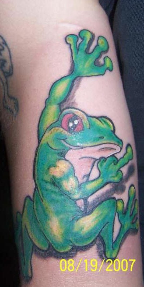 手臂彩色卡通青蛙纹身图案