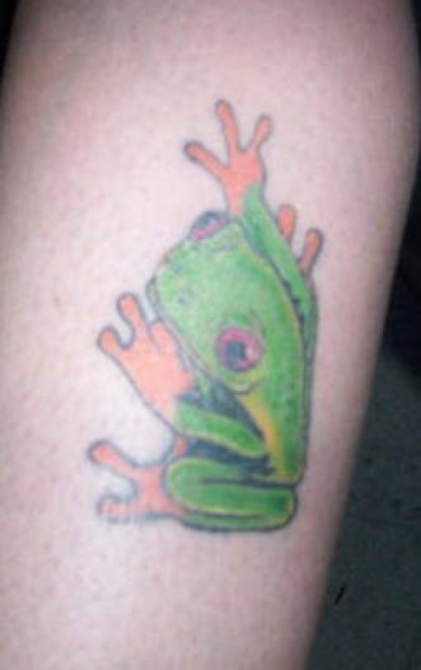 腿部绿色爬行青蛙纹身图案