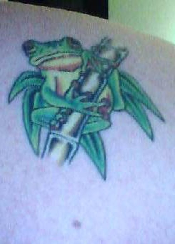 肩部彩色竹子与青蛙纹身图案