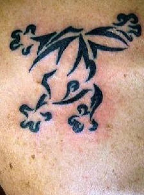 肩部黑色部落式青蛙纹身图案