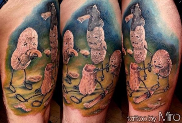 腿部彩色有趣的神奇花生纹身图案