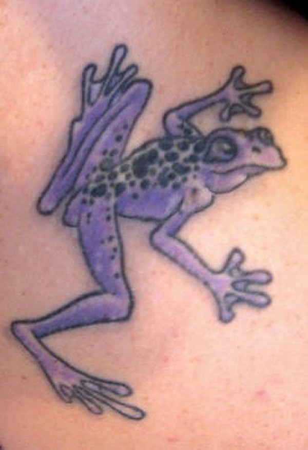 肩部彩色毒紫青蛙纹身图案