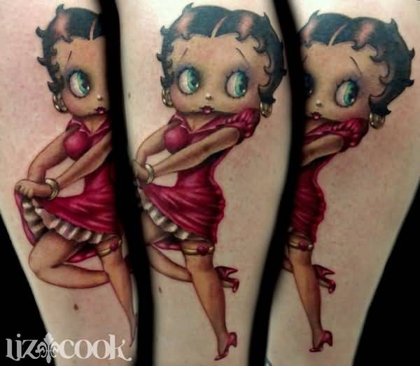 腿部彩色滑稽的舞蹈女孩纹身图案