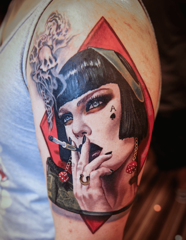 肩部彩色个性吸烟的妇女纹身图案