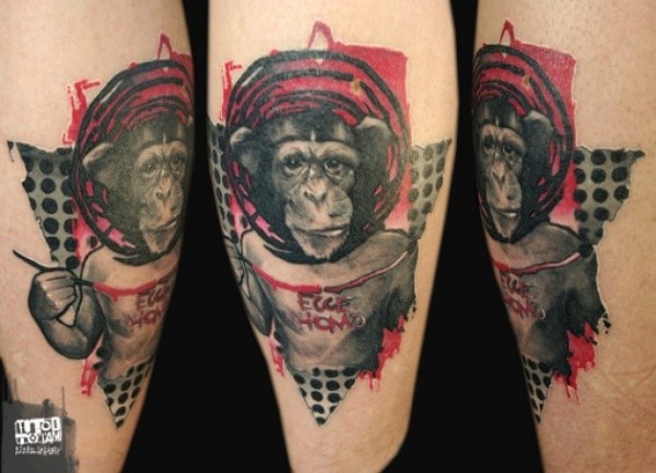 腿部PS图象处理软件风格的彩色滑稽的猴子纹身