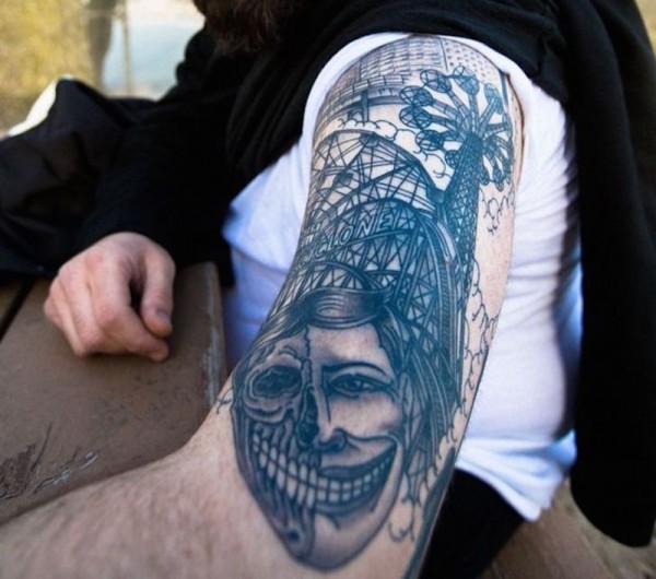 手臂滑稽的各种过山车骷髅纹身图案