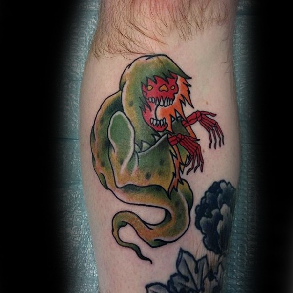手臂老派风格彩色滑稽怪物鬼纹身图案