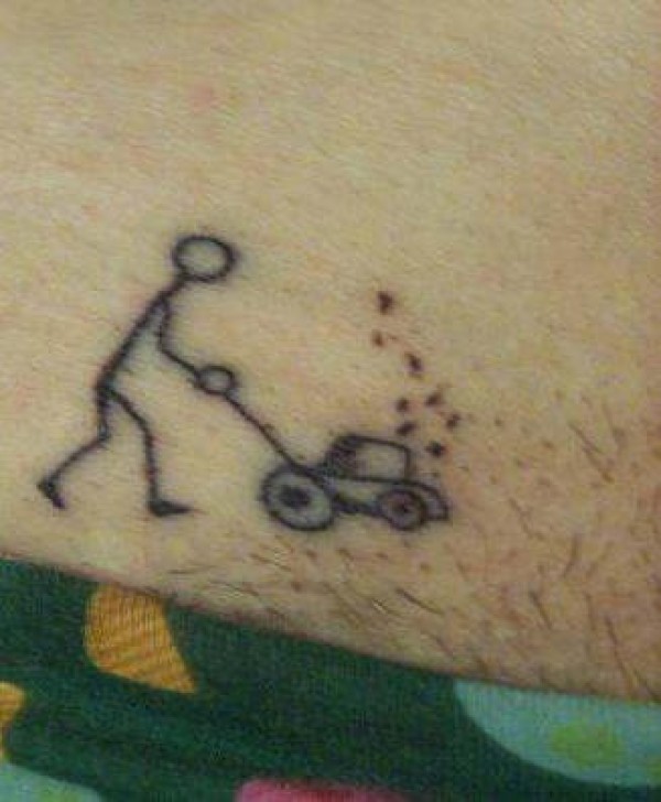 腿部简约人物割草机的纹身图案
