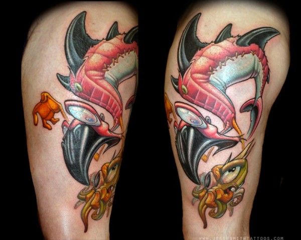 肩部老学校风格彩色怪物纹身图案