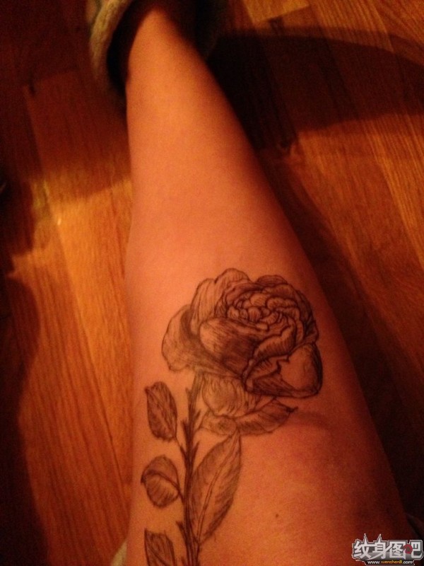一枚国外妹纸腿上的玫瑰花纹身图案