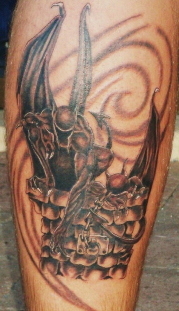 腿部棕色无名的石像鬼纹身图案