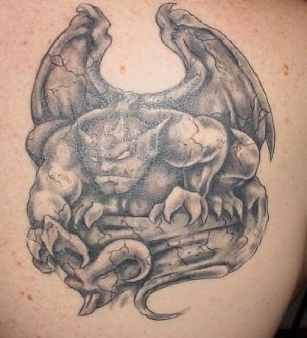 背部灰色石像鬼变形纹身图案