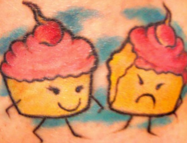 肩部彩色有趣的纸杯蛋糕纹身图案