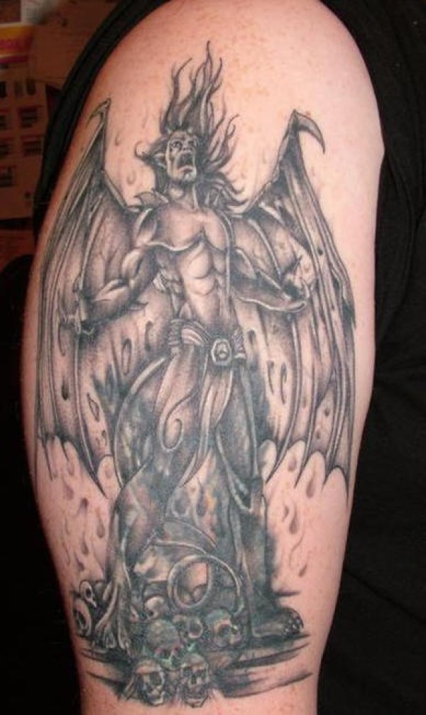 肩部灰色带翅膀的吸血鬼王子纹身