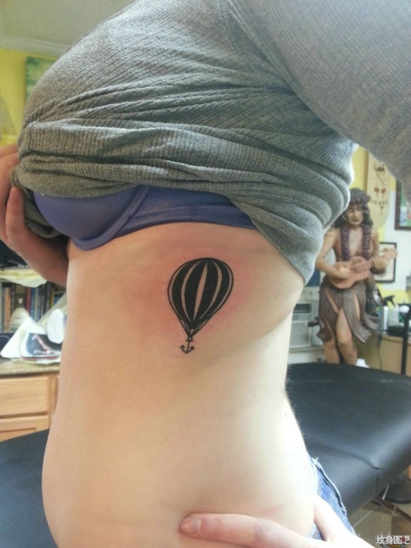 乳房下面纹了一只黑白的热气球