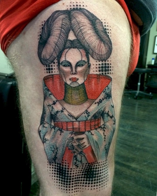 腿部PS图象处理软件风格的彩色艺妓纹身