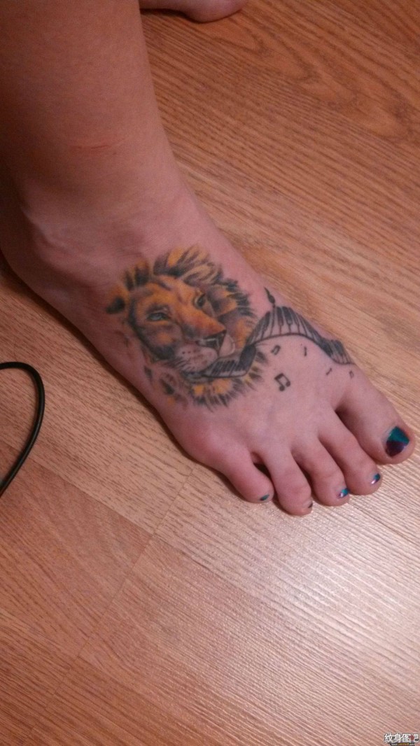 脚背上的狮子嘴里吐出了钢琴的琴键