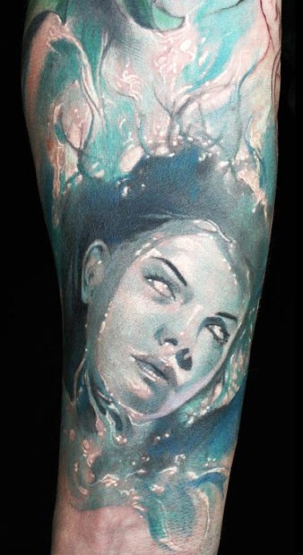 腿部令人毛骨悚然的恐怖女孩纹身图片