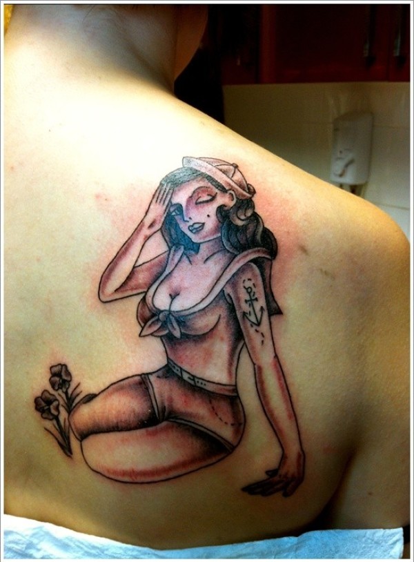 肩部棕色性感女郎纹身图案