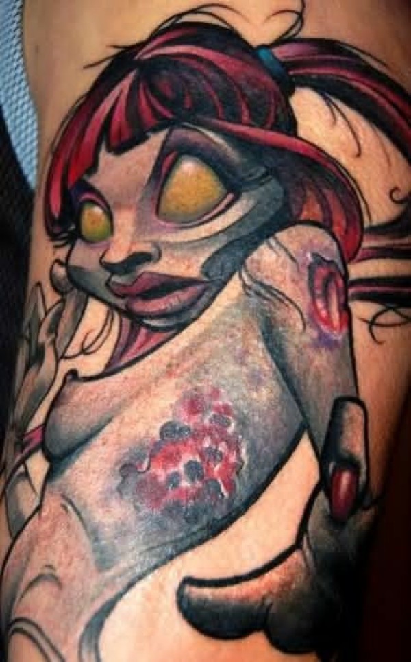 腿部彩色恐怖小女孩僵尸纹身图案