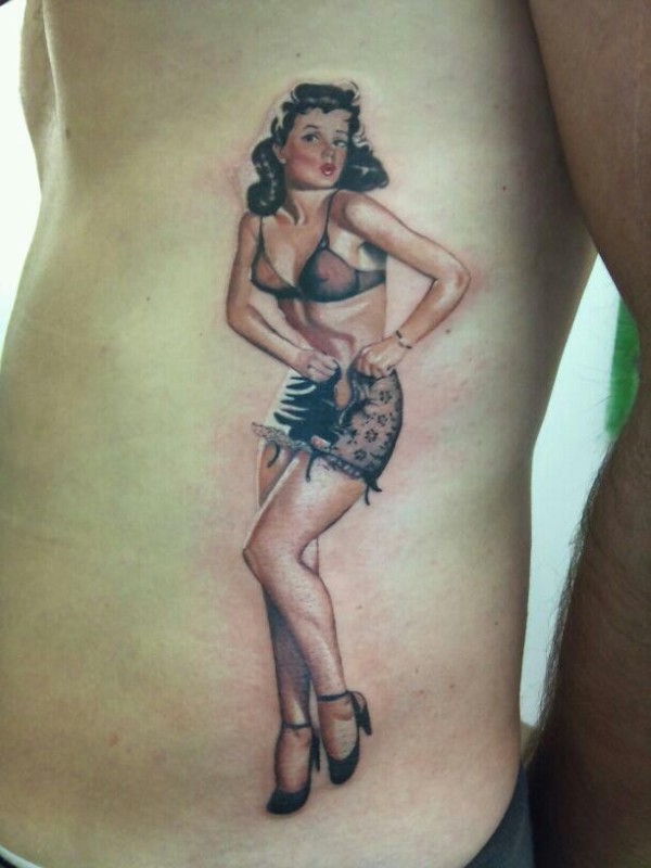 腰侧迷人的比基尼女孩纹身图案