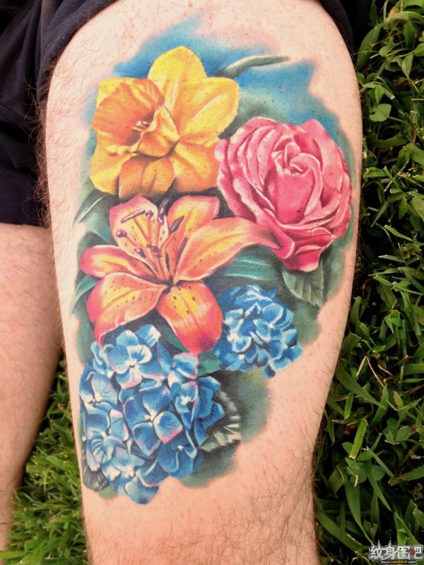 传统花腿纹身--18张传统风格的大花腿纹身图案作品