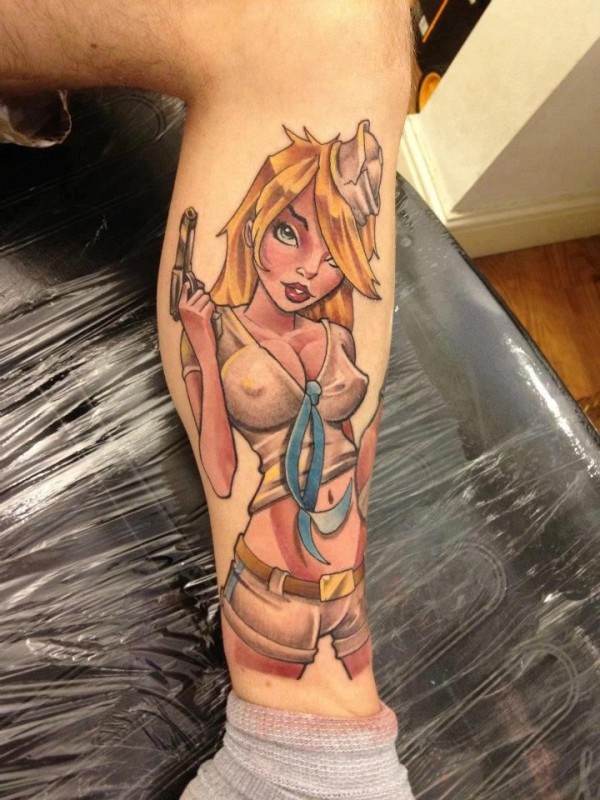 腿部彩色性感的现代女孩纹身图片