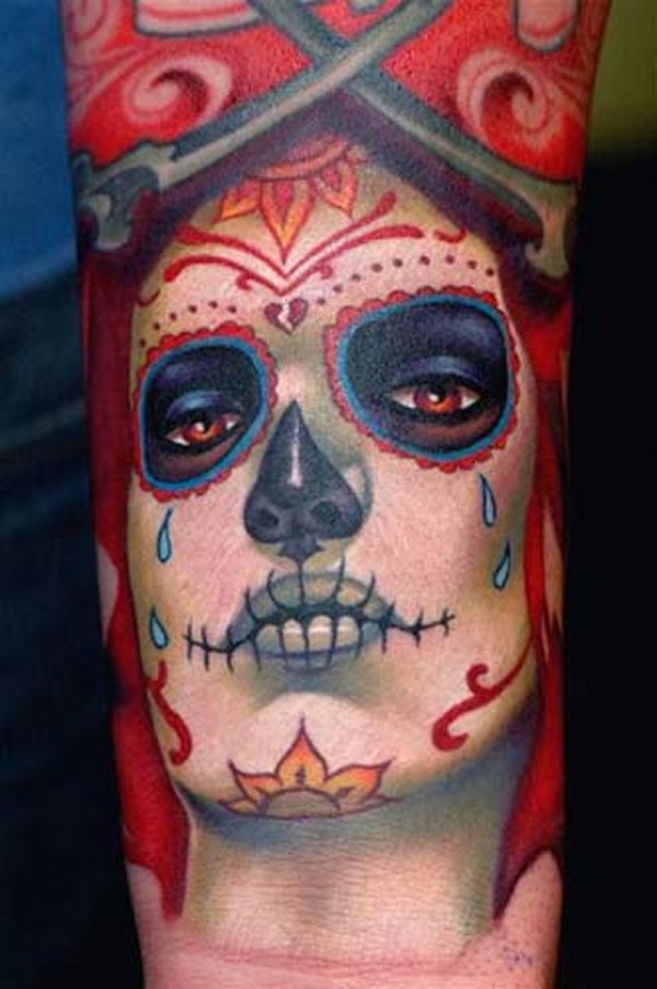 手臂彩色哭泣的死亡女孩纹身图案