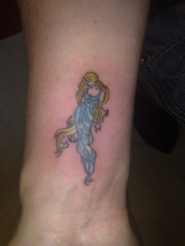 女性手腕上的金发女孩纹身图案