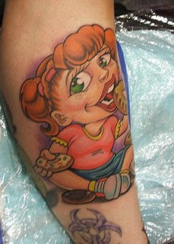 腿部卡通彩色漫画女孩纹身图案