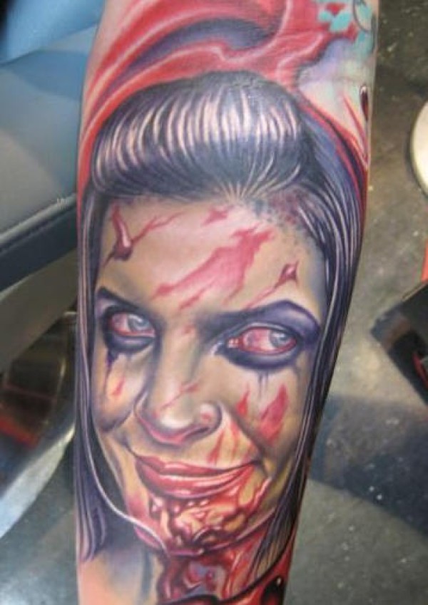 手臂彩色僵尸女孩纹身画像纹身