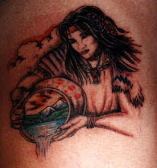 肩部神话的印度女孩与篮子纹身