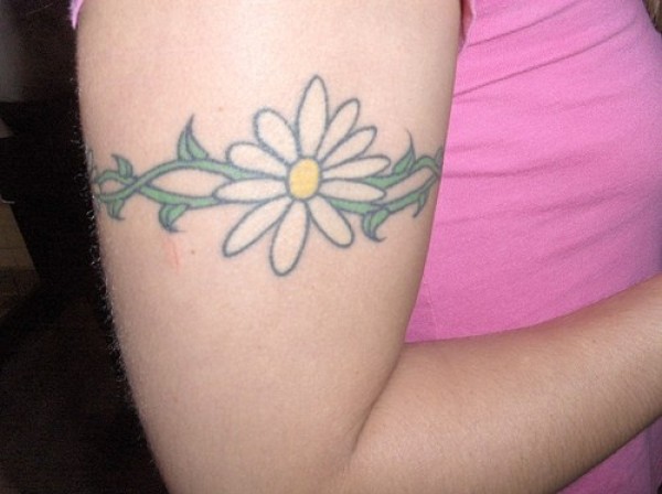 手臂彩色清新菊花臂环纹身图案