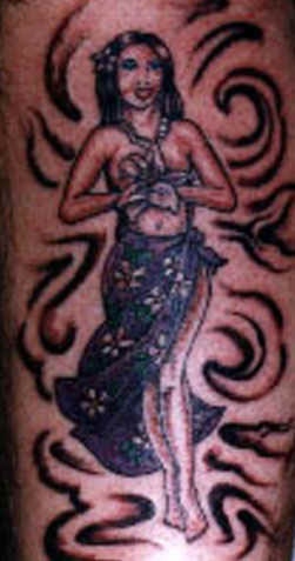 腿部夏威夷性感女孩纹身图案