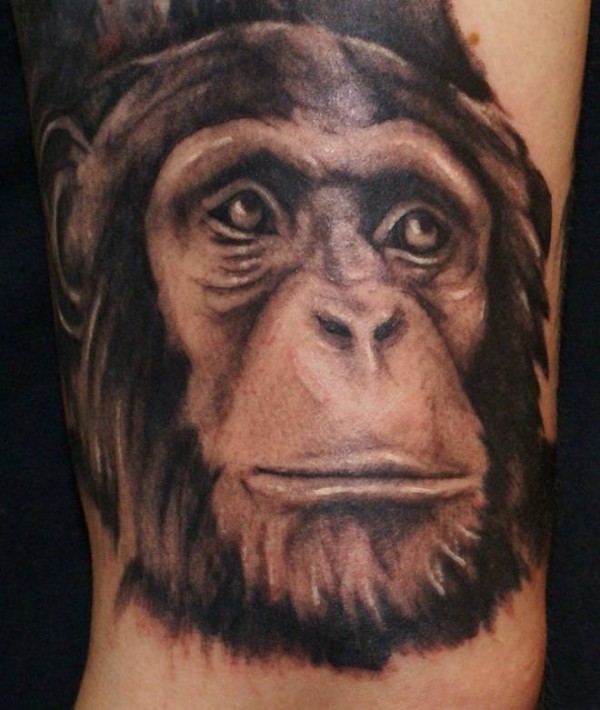 腿部逼真的黑白黑猩猩头部纹身
