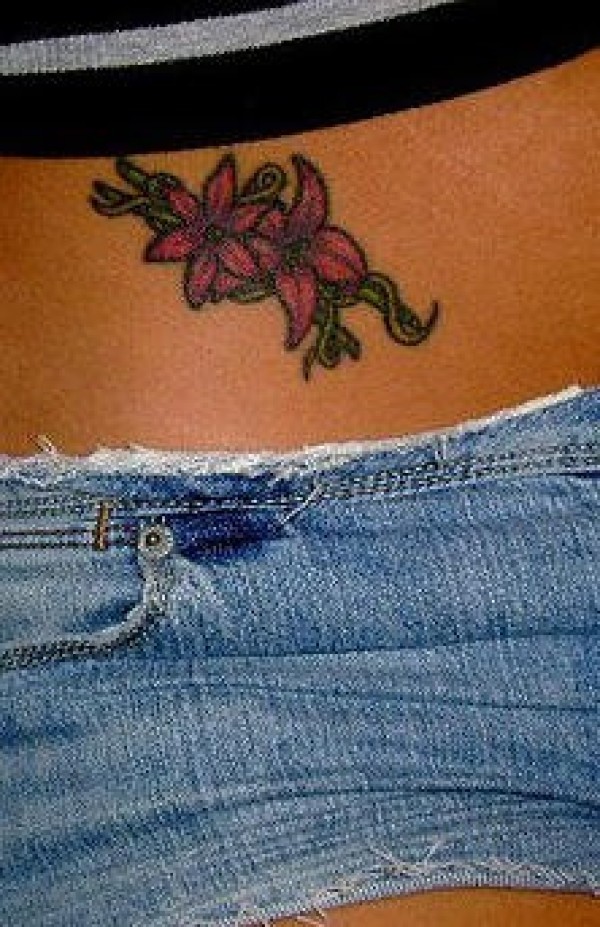 腹部彩色小百合花少女的纹身图案