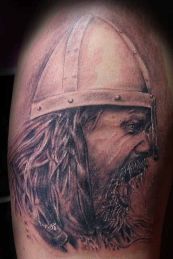 肩部棕色哭泣的战士纹身图案