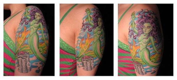 女性肩部彩色美人鱼纹身图片