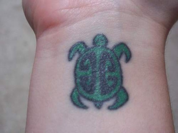 手腕彩色小绿龟纹身图案
