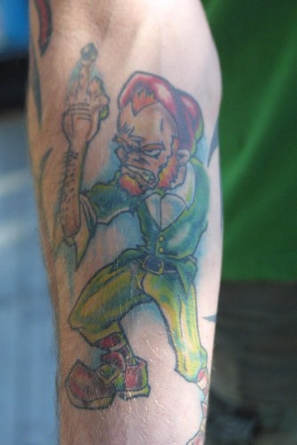 手臂彩色残忍的绿妖精纹身图案