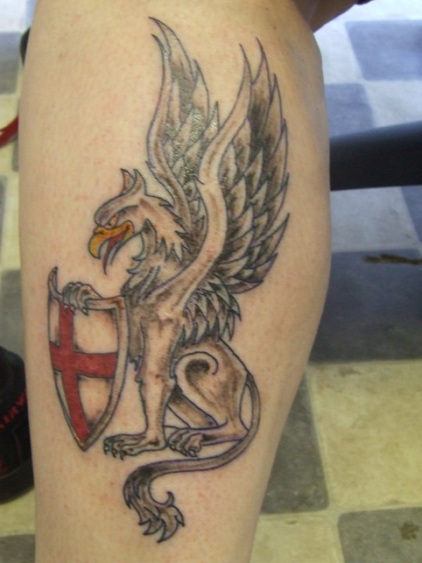 男性腿部格里芬神兽纹身图案