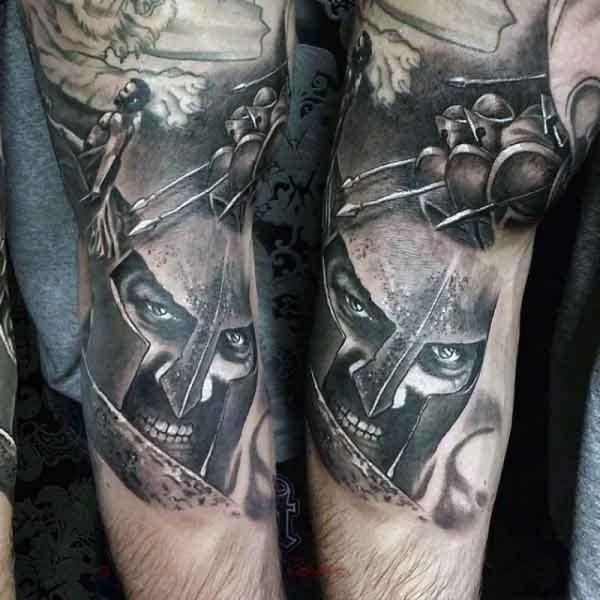 手臂灰色光荣的斯巴达勇士主题纹身图案