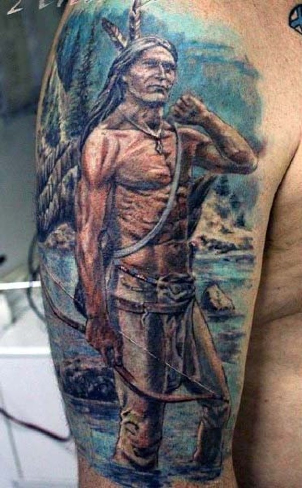 肩部老派风格彩绘印度战士纹身图片
