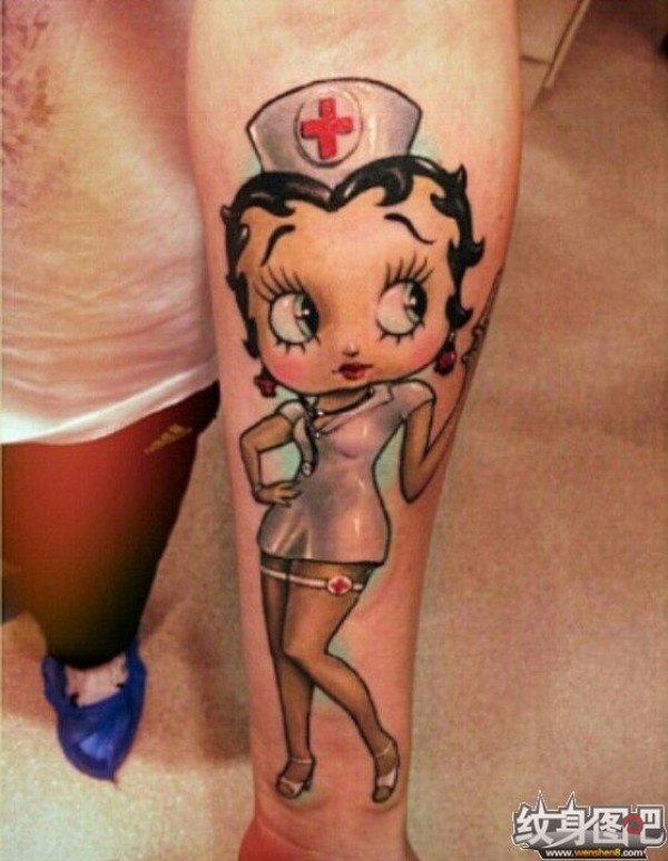复古卡通红唇美女手臂纹身_卡通纹身图案大全_纹身图吧