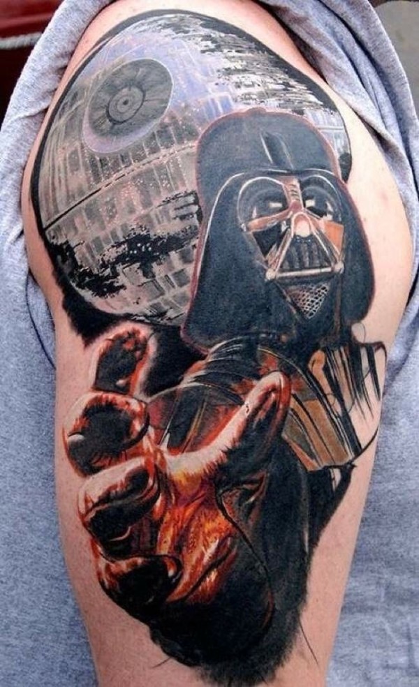 肩部彩色星球大战英雄达斯·维德浆纹身图案