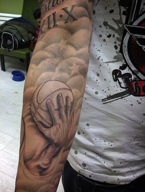 手臂棕色篮球手与星星纹身图案