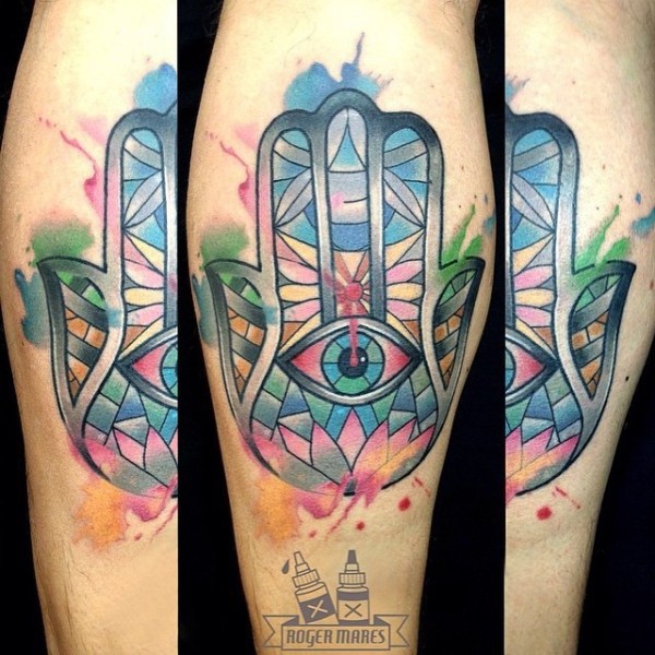 腿部水彩画风格宗教纹身图案